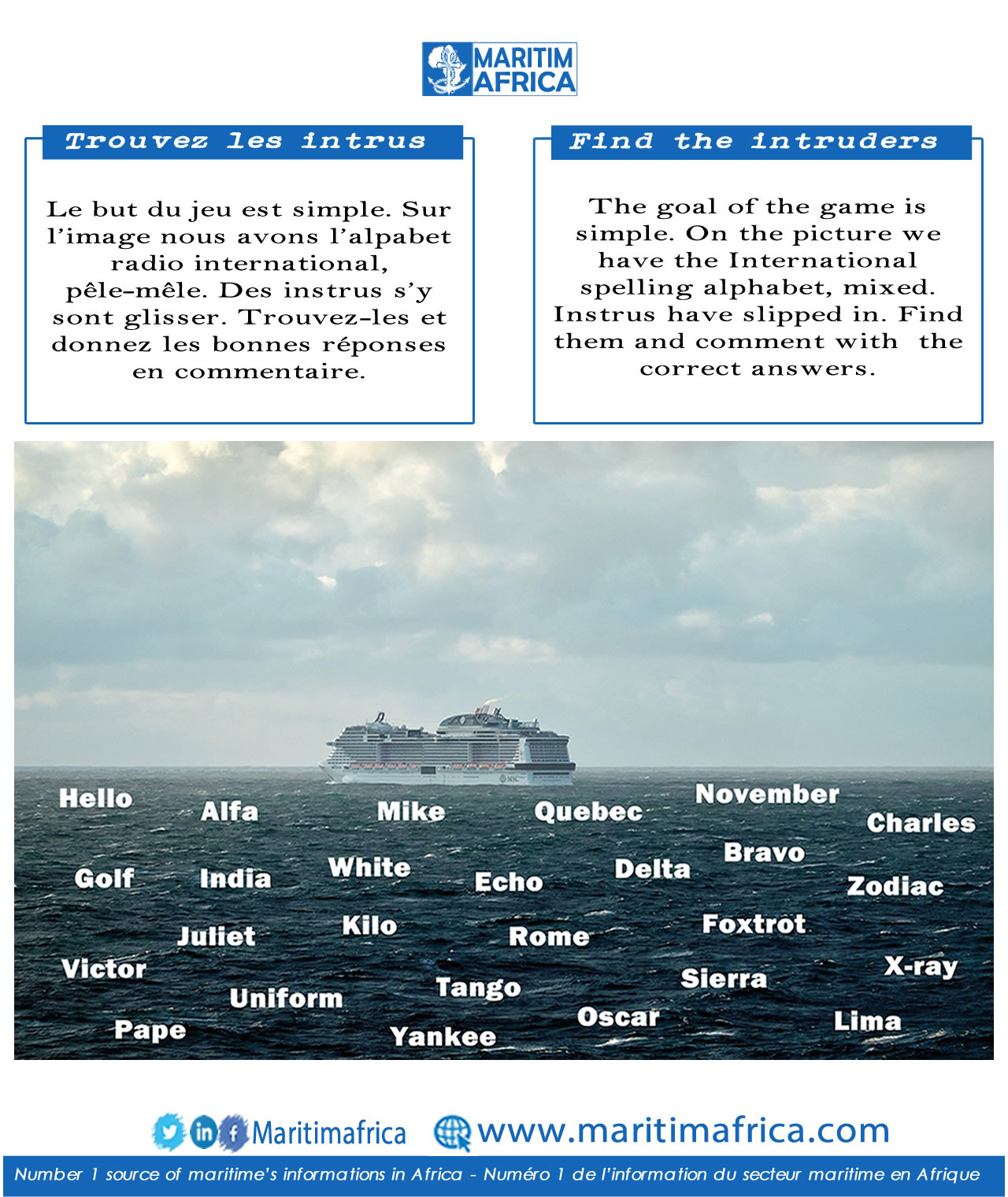 Find the intruders 7 December 2019 Blog (en), Game Time Maritimafrica wish you a happy week-end with this game. Good luck! We will release the answer next Monday. AfricaFind the intrudersgamegame timeMARITIMAFRICAmaritimeMaritime in Africamaritime industryPortsshipping