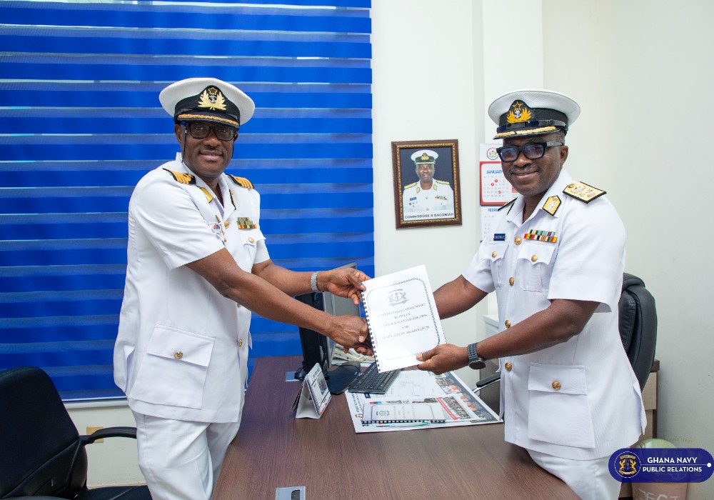 GHANA – COMMODORE BAGONIAH HANDS OVER NAVAL POLICY AND PLANS TO NAVAL CAPTAIN AKOTEY