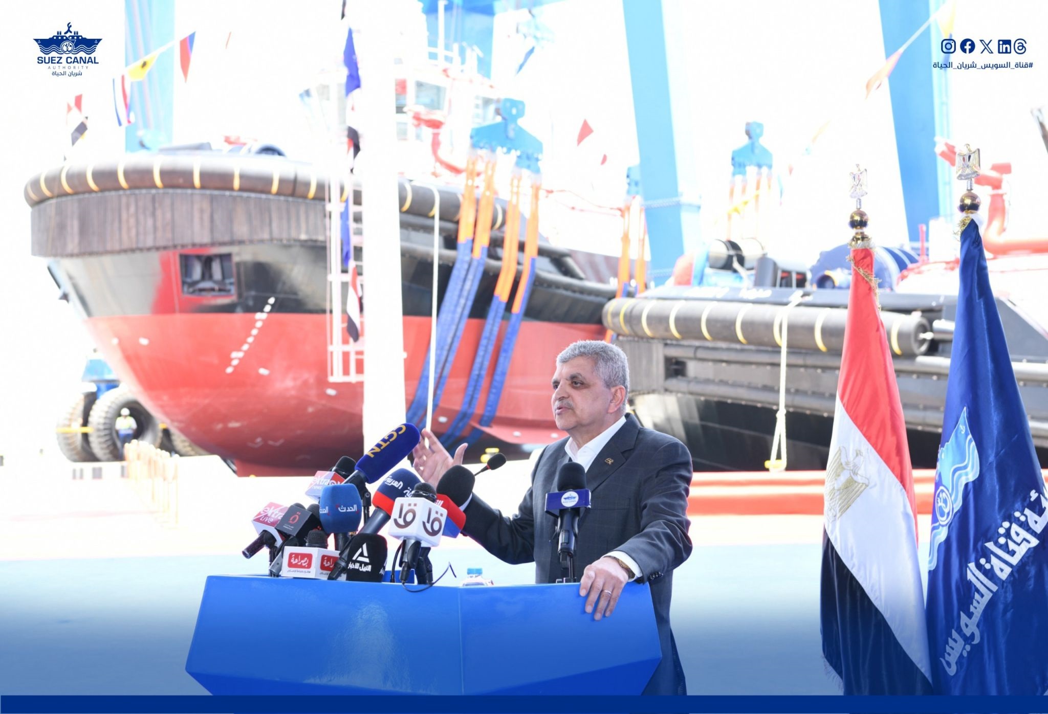On his part, Mr. Mostafa El-Dougishy, Chairman of the South Red Sea Shipyard, has stated that launching the two tugboats is a milestone reflecting the fruitful cooperation with the SCA, stressing that the Company is committed to provide the highest quality standards in building marine units and contributing to localizing this strategic industry in Egypt.