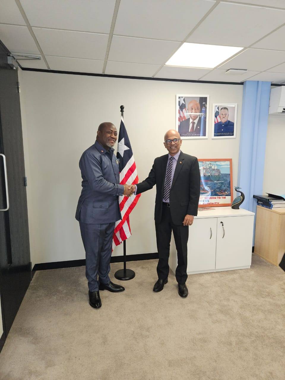 In the meeting held at noon today at the offices of the Liberia Permanent Mission in London, Southwark Bridge, the two Maritime nations forged stronger partnership, cooperation, and collaboration aimed at effectively tackling critical and emerging global maritime issues confronting the smooth flow of International shipping with much emphasis on maritime security and safety.