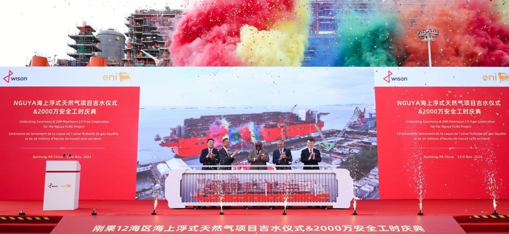 Eni announces that the sail away ceremony for the Nguya floating liquefied natural gas (FLNG) unit was held today in Shanghai. The unit is set to significantly boost LNG production as part of the Congo LNG project in the Marine XII concession, offshore the Republic of Congo. The ceremony was attended by Bruno Jean Richard Itoua, Minister of Hydrocarbons of the Republic of Congo, and Eni delegation led by Stefano Maione, Director of Development, Operations & Energy Efficiency.