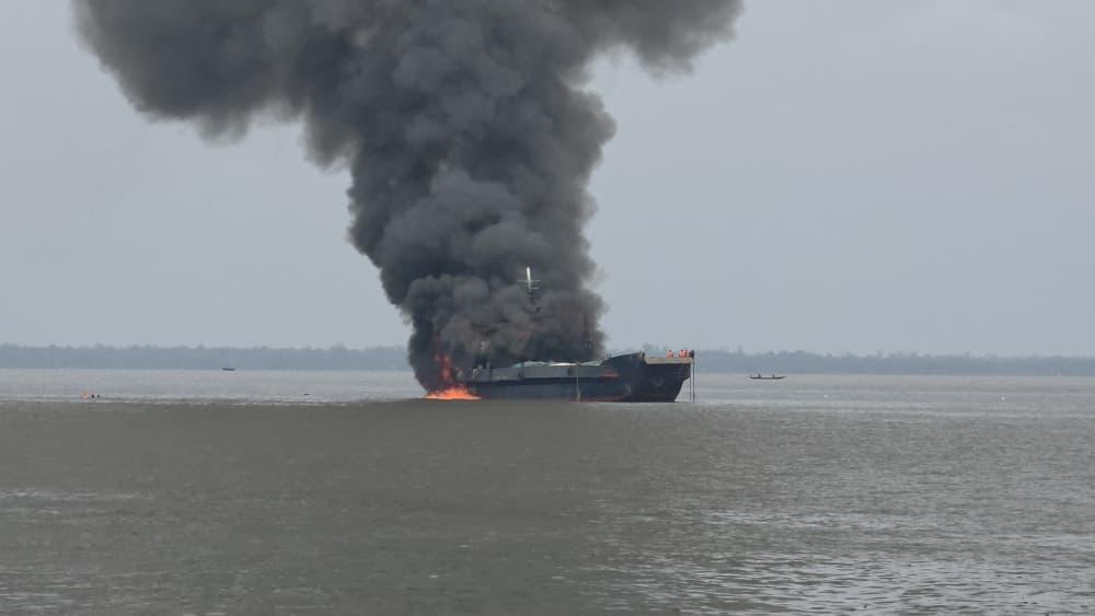 NIGERIAN NAVY RESCUES 20 CREW MEMBERS FROM BURNING MV CHIMBA EXPRESS OFF CALABAR WATERWAYS