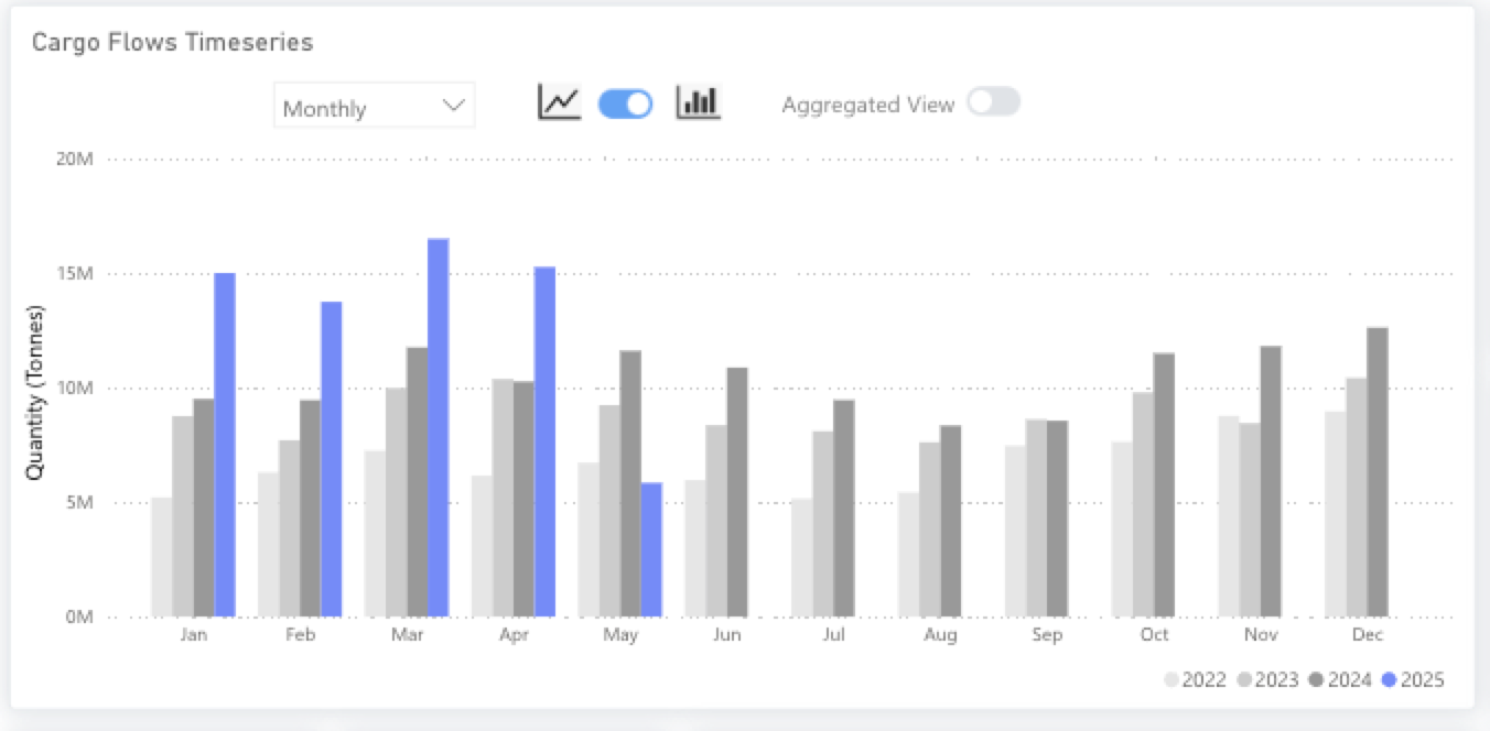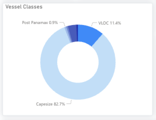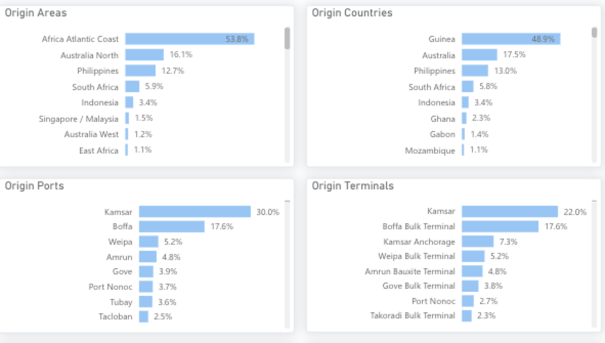 In terms of vessel, Capesize is the most dominant class transporting this cargo. In the period from 2024 to now, 83% of the exported bauxite is carried on a Capesize vessel.