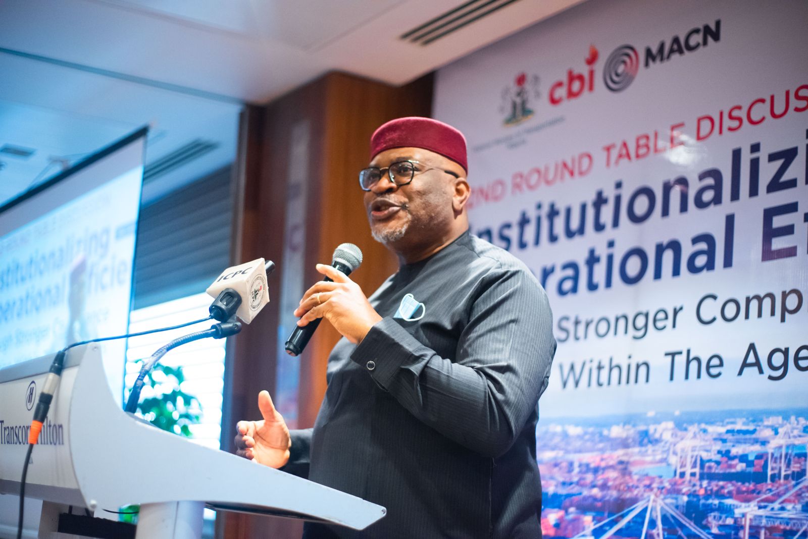Photo : Mr. Apampa presenting at a Collective Action (Compliance Roundtable) Meeting with public, private and civil society stakeholders
