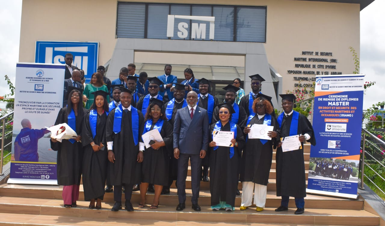 Le secteur maritime du Golfe de Guinée vient d’augmenter son arsenal intellectuel et opérationnel. Après dix mois de formation intensive et exigeante, 21 auditeurs issus du Bénin, du Togo, du Congo, de la Guinée et de la Côte d’Ivoire ont reçu leurs diplômes de Master en Droit et Sécurité des Activités Maritimes et Océaniques (DSAMO). Cette cérémonie, placée sous le parrainage de Monsieur NKOU Christian Armel, Directeur Général de la Marine Marchande de la République du Congo s’est déroulé à l’Amphithéâtre de l’ISMI en présence d’autorités administratives et de partenaires.