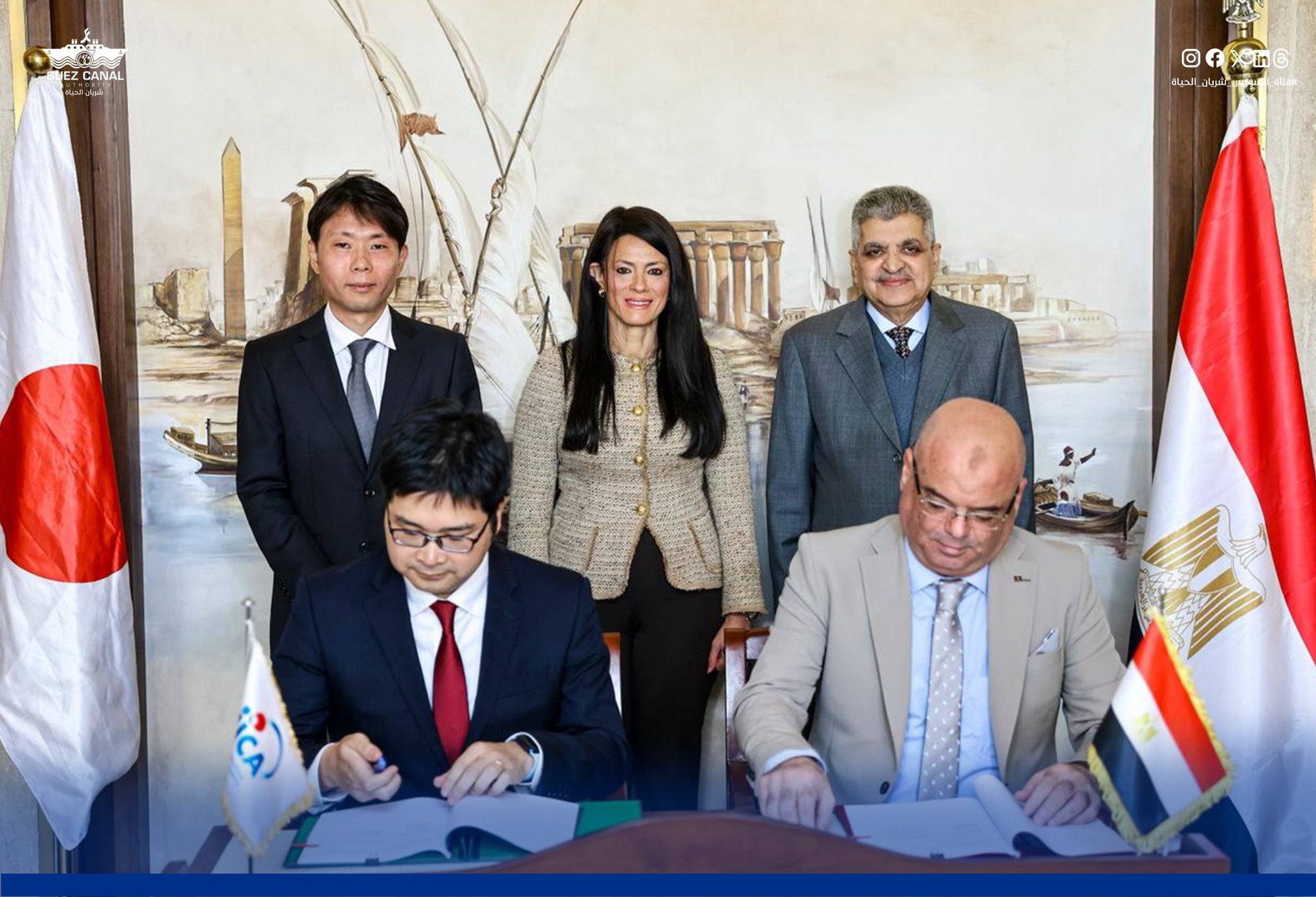 La cérémonie s’est déroulée en présence de M. Yusuke Suzuki, conseiller économique à l’ambassade du Japon. L’accord a été signé par l’ingénieur Ahmed Al-Barbary, directeur du département des chantiers navals de l’Autorité du canal de Suez, et M. Atsushi Yamamoto, représentant en chef adjoint du bureau de la JICA en Égypte.