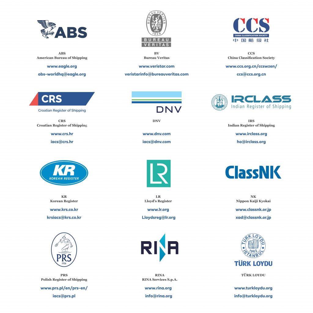 Les principales sociétés de classif ication sont regroupées au sein de l’IACS (International Association of Classification Societies – Association internationale des sociétés de classification) qui compte aujourd’hui douze sociétés de classification maritime membres. Les règles et normes édictées par ces douze sociétés membres de l’IACS couvrent plus de 90 % du tonnage mondial.