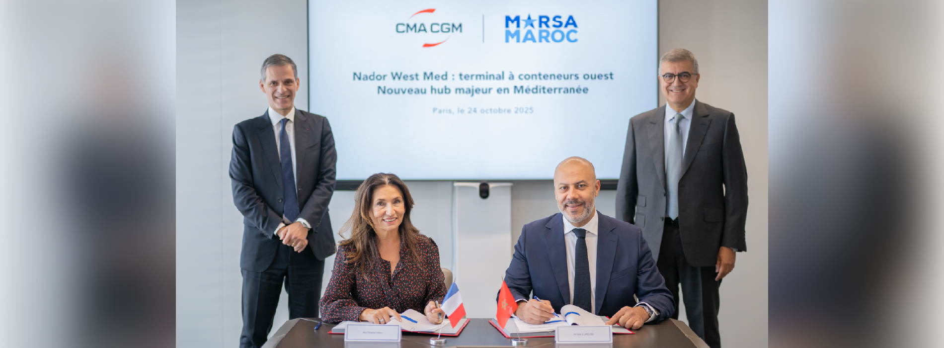 Après la signature, en octobre 2024, d’une convention globale entre le Groupe Tanger Med et CMA CGM, Marsa Maroc et la société CMA Terminals annoncent aujourd’hui la signature d’un accord de partenariat pour l’entrée de cette dernière dans le capital de la filiale portant la concession du terminal Ouest du port Nador West Med, grand port marocain situé en Méditerranée.