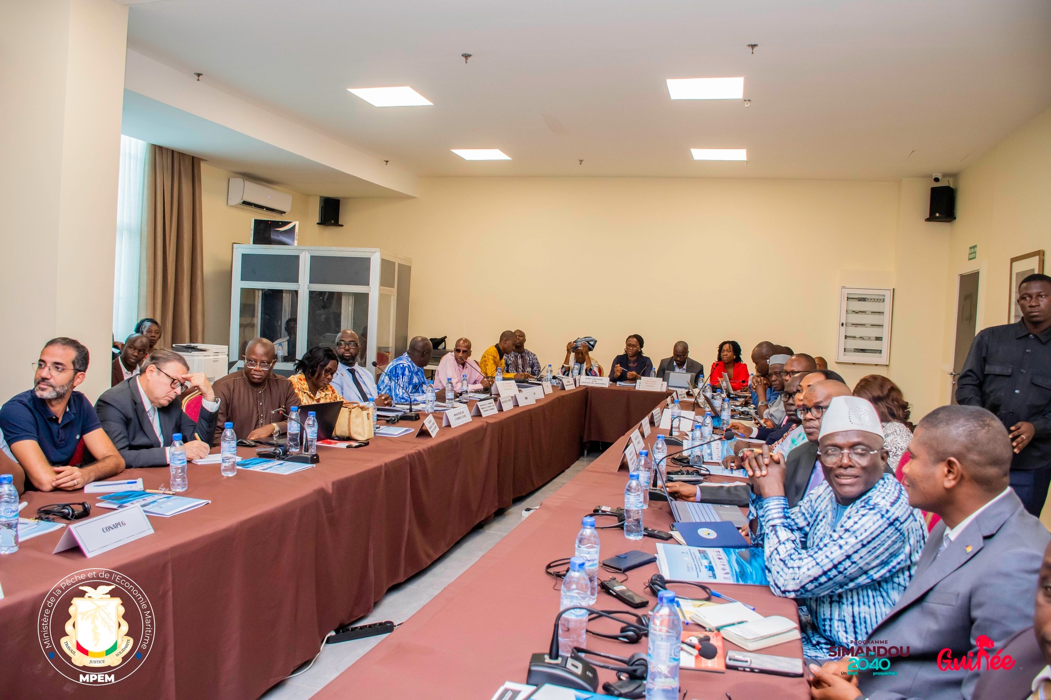 Le Ministre de la Pêche et de l’Économie Maritime, Monsieur 𝐅𝐚𝐬𝐬𝐨𝐮 𝐓𝐇𝐄𝐀, a procédé à l’ouverture des travaux de l’atelier consultatif des parties prenantes, visant à définir les enjeux prioritaires pour 𝐥’𝐞́𝐥𝐚𝐛𝐨𝐫𝐚𝐭𝐢𝐨𝐧 𝐝’𝐮𝐧𝐞 𝐬𝐭𝐫𝐚𝐭𝐞́𝐠𝐢𝐞 𝐧𝐚𝐭𝐢𝐨𝐧𝐚𝐥𝐞 𝐝𝐞 𝐥’𝐞́𝐜𝐨𝐧𝐨𝐦𝐢𝐞 𝐛𝐥𝐞𝐮𝐞 𝐞𝐧 𝐑𝐞́𝐩𝐮𝐛𝐥𝐢𝐪𝐮𝐞 𝐝𝐞 𝐆𝐮𝐢𝐧𝐞́𝐞. Cet atelier vise notamment à aligner ladite stratégie avec celle de l’𝐔𝐧𝐢𝐨𝐧 𝐀𝐟𝐫𝐢𝐜𝐚𝐢𝐧𝐞.