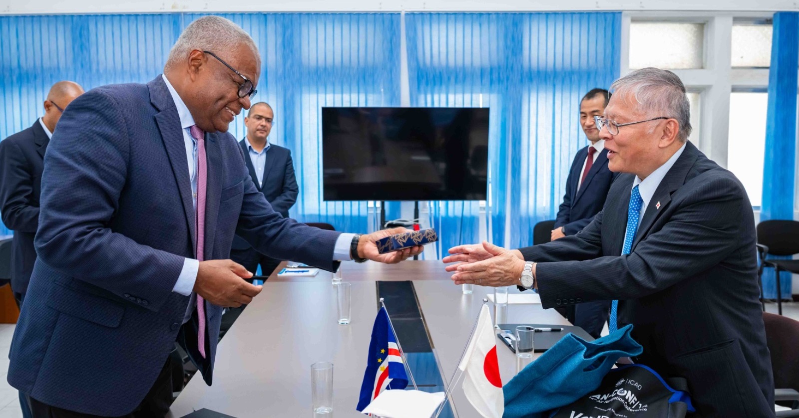O Ministro do Mar, Eng.º Jorge Santos, recebeu em São Vicente o Embaixador do Japão acreditado em Cabo Verde, Akamatsu Takeshi, no âmbito de uma visita oficial dedicada ao reforço da cooperação bilateral no setor marítimo e das pescas.