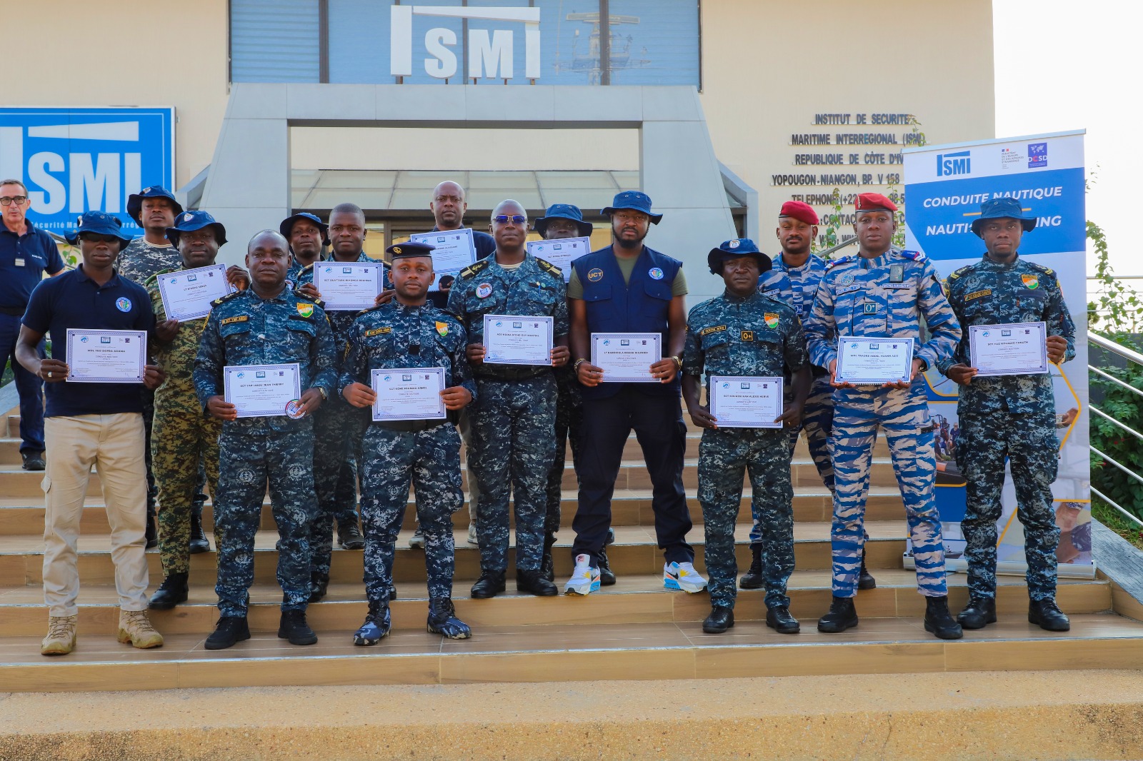 Dans le cadre du projet de Coopération française financé par la Direction de la coopération de sécurité et de défense du Ministère de l’Europe et des Affaires étrangères, l’ISMI a organisé, du 10 au 12 février, une formation d’initiation à la conduite nautique au profit de 16 agents issus des Affaires maritimes, des Douanes, de la Gendarmerie et de la Police nationale ivoiriennes.